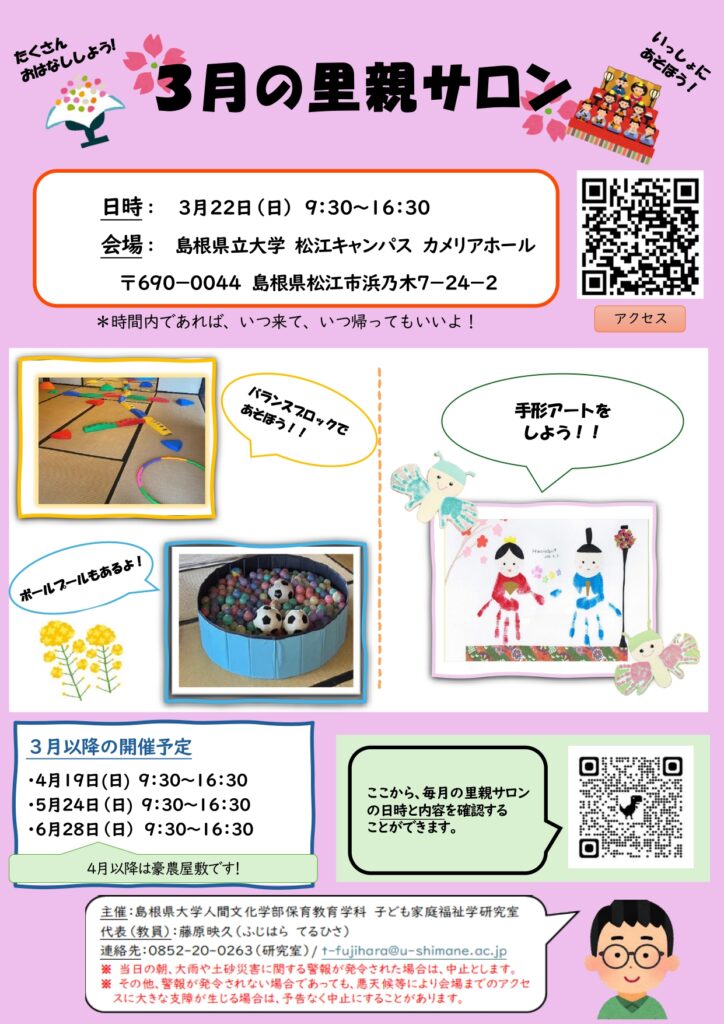 島根県立大学里親サロン3月の開催内容のご案内です♪