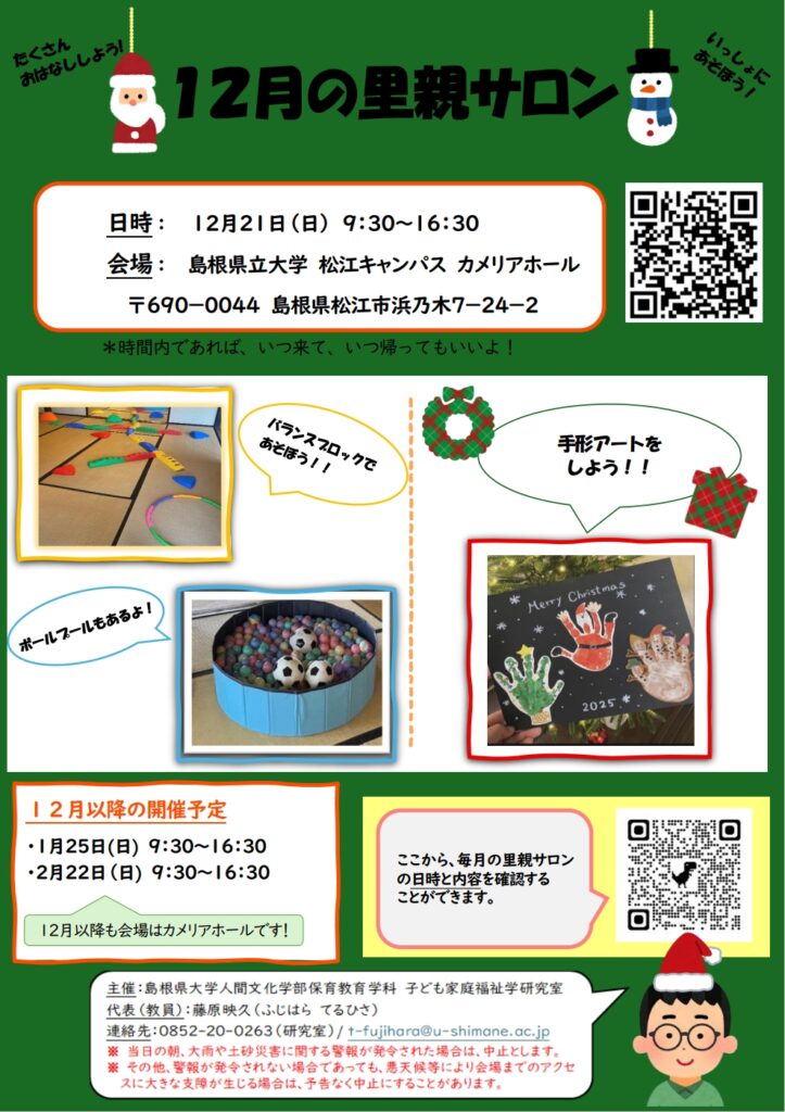 島根県立大学里親サロン12月のお知らせです(^^)/